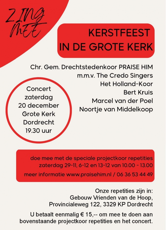 Zingen voor Gods troon mogen wij hier op aarde leren. Dat was de voornaamste reden om te komen tot de oprichting van het Christelijk Gemengd Drechtstedenkoor Praise Him op 11 januari 1993 in Dordrecht. U kunt ons ook volgen op facebook en instagram (praisehim_drechtstedenkoor).